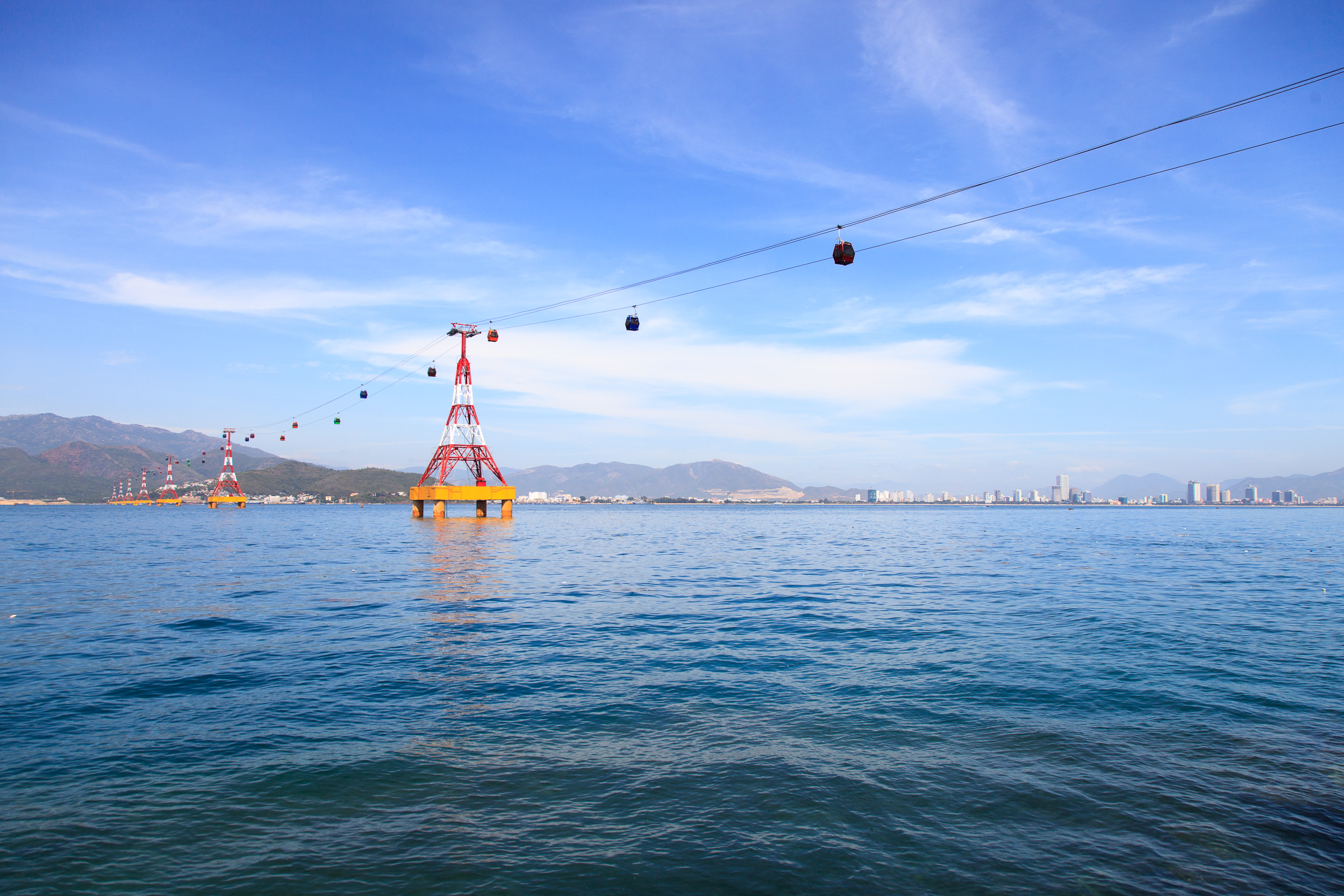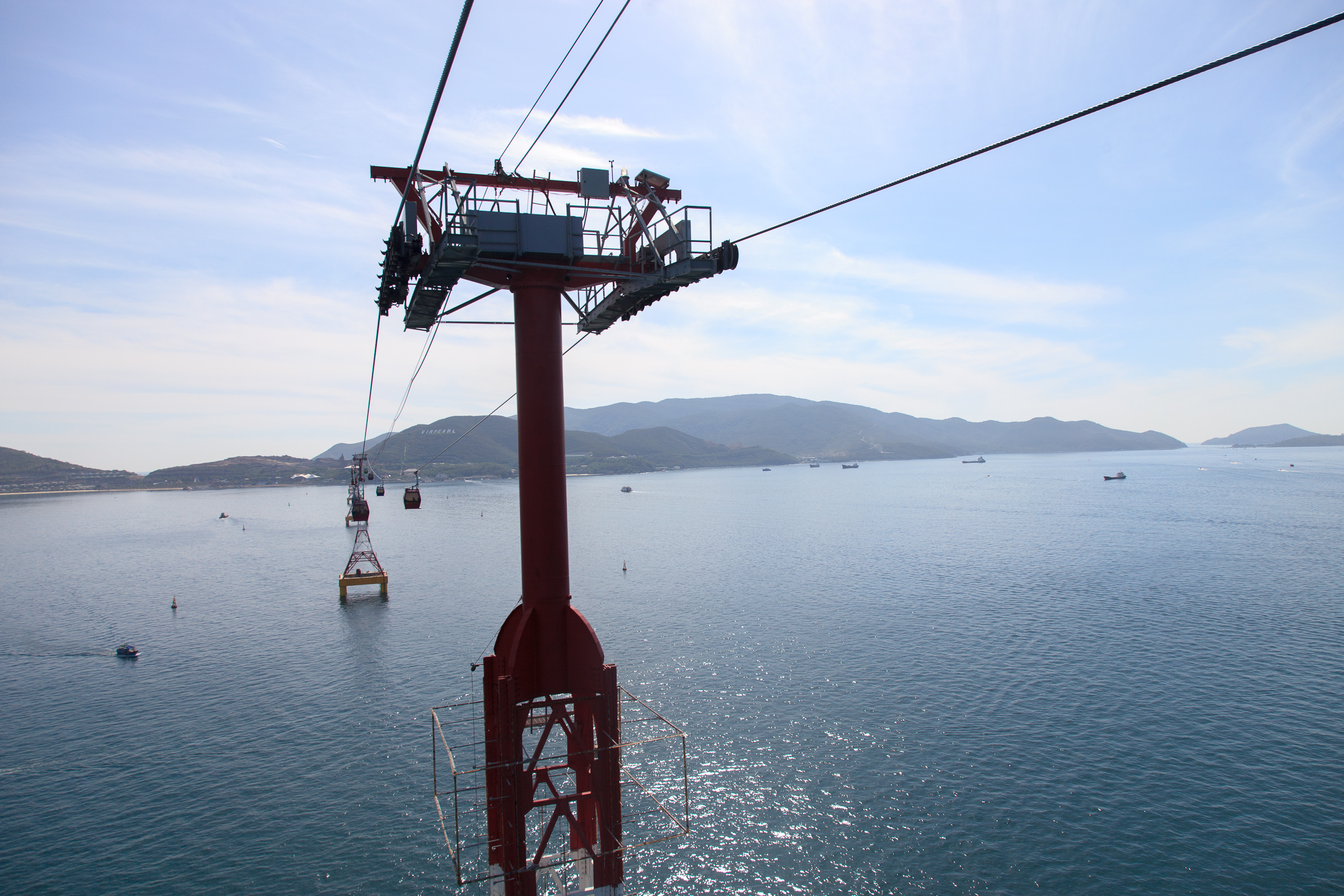 Зато дорога на этот остров очень впечатляет — это натянутая над заливом канатная дорога длиной более 3 км. Местные брошюры утверждают, что это — самый длинный фуникулер над водой в мире. Возможно. В любом случае, виды на залив и город из кабинок открываются просто потрясающие — и одна только эта поездка стоит того, чтобы парк посетить. Правда, судя по отзывам на трипадвайзере, эта канатка зачастую оказывается "узким местом", собирая гигантские толпы на вход и на выход. Нам повезло: мы приехали в парк достаточно рано, около восьми утра, когда большая часть аттракционов еще была закрыта, но кабинки уже ходили; а уезжали после обеда, не дожидаясь вечернего "часа пик" — так что никаких очередей мы не застали, и канатка произвела только позитивное впечатление.